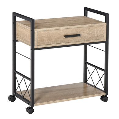 HOMCOM Mobiler Beistelltisch mit Schublade Eiche