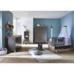 Produktdetails: Modernes Kinderzimmer in grauer Optik mit Holzabsetzungen Made in Germany Kinderbett 4-fach höhenverstellbarer Lattenrost Gitterseiten mit Flachstäben 3 Schlupfsprossen Kopf- und Fußteil sind geteilt Umbaubar zum Juniorbett Kommode 1 Tür mit Türdämpfung im Scharnier 1 Einlegeboden 3 Schubladen mit Mitteltrennsteg und Self-Soft-Close Obere Schublade mit Vollauszug Kleiderschrank 3 Türen mit Türdämpfung im Scharnier 2 große Einlegeböden 3 kleine Einlegeböden 1 Kleiderstange Umbauseiten Für den Umbau vom Kinderbett zum Juniorbett Passend zum arthur berndt Kinderbett Cloe Technische Details: Kinderbett Farbe: Lava / Eiche Material: Spanplatte, melaminbeschichtet Matt foliert Absetzungen in Sägerau Nachbildung Liegefläche: Breite x Länge 70 x 140 cm Maße: Breite x Länge x Höhe 77 x 143 x 84 cm Kommode Farbe: Lava / Eiche Material: Spanplatte, melaminbeschichtet Material Füße: MDF, melaminbeschichtet Matt foliert Absetzungen in Sägerau Nachbildung Maße ohne Wickelaufsatz: Breite x Tiefe x Höhe 131 x 49 x 93 cm Maße mit Wickelaufsatz: Breite x Tiefe x Höhe 131 x 78 x 103 cm Wickelaufsatz Farbe: Eiche Material: Spanplatte, melaminbeschichtet Sägerau Nachbildung Maße: Breite x Tiefe x Höhe 88 x 78 x 6 cm Wickelfläche: Breite x Tiefe 85 x 75 cm Wickelaufsatz ist abnehmbar Kleiderschrank Farbe: Lava / Eiche Material: Spanplatte, melaminbeschichtet Material Füße: MDF, melaminbeschichtet Matt foliert Absetzungen in Sägerau Nachbildung Maße: Breite x Tiefe x Höhe 131 x 51 x 189 cm Umbauseiten Farbe: Eiche Material: Spanplatte, melaminbeschichtet Maße: Breite x Höhe 139 x 19 cm Im Lieferumfang enthalten: Kinderbett Lattenrost Umbauseiten Kommode Wickelaufsatz Kleiderschrank Achtung: Bettschubkasten, Wandreagl, Standregal, Matratze und Dekoration sind nicht im Lieferumfang enthalten