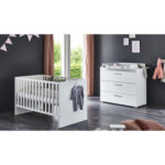 Das Sparset Liene ist ein wahres Allround-Talent. Mit seiner klaren Linienführung und den hochwertigen, weißen MDF-Fronten mit weicher, matter Oberfläche passt es in jedes Farbkonzept. Ein ganz besonderes Highlight bei diesem Zimmer sind die Metallgriffe mit 3 Kristallsteinen. Diese verleihen dem Babyzimmer einen außergewöhnlich edlen Look. Für Eltern, die es lieber etwas schlichter mögen, werden die Metallgriffe auch ohne Kristallsteine mitgeliefert. Die hochwertige technische Ausstattung der Möbel mit Soft-Close lässt keine Wünsche offen. Produktdetails: Kinderbett Farbe: weiß Material: MDF, melaminbeschichtet Matt foliert mit Rillenfräsung Maße: Breite x Länge x Höhe 76 x 144 x 84 cm Liegefläche: Breite x Länge 70 x 140 cm 3 Schlupfsprossen 4-fach höhenverstellbar Haptische Dekoroberfläche Umbaubar zum Juniorbett mit Umbauseiten Made in Germany Kommode Farbe: weiß Material: MDF, melaminbeschichtet Matt foliert mit Rillenfräsung Matte Metallgriffe mit und ohne 3 Kristallsteine Maße ohne Wickelaufsatz: Breite x Tiefe x Höhe 114 x 49 x 96 cm Maße mit Wickelaufsatz: Breite x Tiefe x Höhe 114 x 49 x 106 cm 3 große Schubladen mit Trennsteg und Self-Soft-Close Made in Germany Wickelaufsatz Farbe: weiß Material: MDF, melaminbeschichtet Matt foliert mit Rillenfräsung Wickelfläche: Breite x Tiefe 85 x 75 cm Wickelaufsatz ist abnehmbar Made in Germany Im Lieferumfang enthalten: Kinderbett Lattenrost Kommode Wickelaufsatz Achtung: Umbauseiten, Bettschubkasten, Standregal, Wandregal, Matratze und Dekoration sind nicht im Lieferumfang enthalten