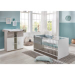 Das moderne Sparset Lotti von arthur berndt in dem Trenddekor Ulme silbergrau ist ein absoluter Hingucker. Es überzeugt außerdem durch seine pflegeleichte Melamin-Oberfläche und seine haptische Dekoroberfläche. Produktdetails: Kinderbett Farbe: weiß Material: Spanplatte, melaminbeschichtet Liegefläche: Breite x Länge 70 x 140 cm Maße: Breite x Länge x Höhe 75 x 142 x 73 cm Gitterseiten mit Rundstäben 3 Schlupfsprossen 4-fach höhenverstellbar Umbaubar zum Juniorbett Trenddekor Ulme silbergrau Made in Germany Wickelkommode Farbe: weiß / natur Farbe Griffe: silber, matt Material: Spanplatte, melaminbeschichtet Material Griffe: Kunststoff Wickelfläche: Breite x Tiefe 85 x 75 cm Maße ohne Wickelaufsatz: Breite x Tiefe x Höhe 88 x 37 x 92 cm Maße mit Wickelaufsatz: Breite x Tiefe x Höhe 88 x 75 x 100 cm Links / rechts: je 1 Schublade und 1 Einlegeboden Mitte: 2 Einlegeböden Wickelaufsatz ist abnehmbar Made in Germany Im Lieferumfang enthalten: Kinderbett Lattenrost Kommode Wickelaufsatz Achtung: Matratze, Umbauseiten und Dekoration sind nicht im Lieferumfang enthalten