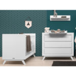 Die niederländische Marke Bopita steht für moderne und qualitativ hochwertige Baby- und Kindermöbel. Bopita arbeitet ausschließlich mit umweltfreundlichen und zertifizierten Materialien, die den neusten europäischen EN-Sicherheitsstandards entsprechen. Alle Produkte werden in den Niederlanden entworfen und in Europa produziert. Produktdetails: Kinderbett Farbe: weiß Material: MDF / Buche Liegefläche: Breite x Länge 60 x 120 cm Maße: Breite x Länge x Höhe 67 x 126 x 89 cm Bodenfreiheit: 15 cm Belastbarkeit: 50 kg Höhenverstellbare Liegefläche Wickelkommode Farbe: weiß Material: MDF / Spanplatte Maße Kommode: Breite x Tiefe x Höhe 105 x 55 x 92 cm Maße Wickelaufsatz: Breite x Tiefe x Höhe 60 x 75 x 9 cm Wickelhöhe: 92 cm 3 Schubladen Soft-Close Wickelaufsatz: Kommode steht mit Aufsatz circa 10-15 cm von der Wand ab Im Lieferumfang enthalten: Kinderbett inklusive Lattenrost Wickelkommode Wickelaufsatz Achtung: Matratze, Hängeregal und Dekoration sind nicht im Lieferumfang enthalten.