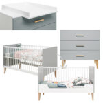 Bopita Babyzimmer Emma 2-teilig 70 x 140 cm umbaubar weiß / grau mit Wickelaufsatz