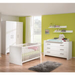 Fiona. Ein Traum in weiß. Paidi denkt an die Zukunft. Auf alle aktuellen Paidi Katalog-Programme erhalten Sie 5 Jahre Nachkauf-Garantie und Produkt-Garantie. Ausgenommen sind Textilien und Matratzen. So schlicht, so schön! Fiona bildet den eleganten weißen Rahmen, in dem die farbenfrohen Textil-Accessoires am schönsten zur Geltung kommen. Die Möbel und Betthäupter punkten mit ihrer modernen, linearen Optik. Die Griffe an Schränken, Schubladen und Aufbewahrungsboxen sind in Chrom matt. Produktdetails: Kinderbett Farbe: kreideweiß Material Häupter: MDF mit hochwertiger Dekorfolie Material Gitterseiten: Massivholz, lackiert Liegefläche: Breite x Länge 70 x 140 cm Maße: Breite x Länge x Höhe 75,8 x 145 x 79,9cm Lattenrost 4-fach höhenverstellbar 2 Schlupfsprossen Umbaubar zum Juniorbett mit separat erhältlichen Umbauseiten PVC-frei Kommode breit Farbe: Dekor kreideweiß Material Front / Schubladen: MDF mit hochwertiger Dekorfolie Material Korpus: Spanplatte mit kratzfester Melaminharzfolie Material Griffe: Chrom matt Maße: Breite x Tiefe x Höhe 147,2 x 55,3 x 91,9 cm 3 Schubladen mit Facheinteilung Oberste Schublade mit Vollauszug Soft-Close-System PVC-frei Wickelaufsatz Farbe: Dekor kreideweiß Material: Spanplatte mit kratzfester Melaminharzfolie Maße: Breite x Tiefe x Höhe 147,2 x 78,1 x 9,5 cm Wickelfläche: Breite x Tiefe 84,2 x 76,2 cm PVC-frei 3 Schutzseiten Kleiderschrank Farbe: kreideweiß Material Front / Türen: MDF mit hochwertiger Dekorfolie Material Korpus: Spanplatte mit kratzfester Melaminharzfolie Material Griffe: Chrom matt Maße: Breite x Tiefe x Höhe 156,8 x 55,3 x 205,3 cm 3 Türen 2 Mittelwände 2 Kleiderstangen 4 Einlegeböden, breit 4 Einlegeböden, schmal PVC-frei Soft-Close-System Im Lieferumfang enthalten: AIRWELL®-Comfort Lattenrost Kinderbett Kommode Wickelaufsatz Kleiderschrank Achtung: Umbauseiten, Wandregale und Dekoration sind im Lieferumfang nicht enthalten.