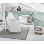 Die klaren Linien des Kinderzimmers Florence kommen durch die grifflosen Türen besonders gut zum Ausdruck und geben dem Zimmer einen hochwertigen Ausdruck. Die hellen Möbelfronten vermitteln Leichtigkeit und schaffen eine freundliche Atmosphäre. Produktdetails: Made in Germany Schardt als Testsieger „nachhaltiges Engagement“ Auszeichnung Schardt „höchste Weiterempfehlung“ von Kunden Kinderbett Farbe: weiß / platingrau Material Gitterstäbe und Fußgestell: Buche massiv, lackiert Material Kopf und Fußteil: Spanplatte, melaminbeschichtet Material Fußgestell: Buche massiv, lackiert Liegefläche: Breite x Länge 70 x 140 cm Maße: Breite x Länge x Höhe 77 x 144 x 84 cm 3-fach verstellbares Rost 3 Schlupfsprossen Umbaubar zum Juniorbett Umbauseiten Farbe: weiß Material: Spanplatte, melaminbeschichtet Maße: Breite x Länge x Höhe 2 x 140 x 14 cm Wickelkommode Farbe: weiß / platingrau Material Korpus: Spanplatte, melaminbeschichtet Material Fronten: MDF, lackiert Material Fußgestell: Buche massiv, lackiert Maße ohne Wickelaufsatz: Breite x Tiefe x Höhe 135 x 53 x 98 cm Maße mit Wickelaufsatz: Breite x Tiefe x Höhe 135 x 72 x 106 cm Wickelhöhe: 98 cm Mit Grifffräsung Wickelaufsatz abnehmbar 3 Schubladen mit Selbsteinzug Extra starke seitliche Führungsschienen Im Lieferumfang enthalten: Kinderbett Kommode Wickelaufsatz Umbauseiten Achtung: Wandregal, Matratze und Dekoration sind nicht im Lieferumfang enthalten
