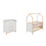 Produktdetails: Made in Germany Schardt als Testsieger „nachhaltiges Engagement“ Auszeichnung Schardt „höchste Weiterempfehlung“ von Kunden Hausbett Farbe: seidengrau / natur Material Gitterstäbe: Buche massiv, geölt Material Kopf und Fußteil: Spanplatte, melaminbeschichtet Liegefläche: Breite x Länge 70 x 140 cm Maße: Breite x Länge x Höhe 77 x 144 x 173 cm 3-fach verstellbares Rost 3 Schlupfsprossen Umbaubar zum Juniorbett Wickelkommode Farbe: seidenfarben / natur Material Korpus und Fronten: Spanplatte, melaminbeschichtet Material Fußgestell: Buche massiv, geölt Maße ohne Wickelaufsatz: Breite x Tiefe x Höhe 90 x 53 x 94 cm Maße mit Wickelaufsatz: Breite x Tiefe x Höhe 90 x 70 x 102 cm Wickelhöhe: 94 cm Griffe in Buche Massivholz Wickelaufsatz abnehmbar 3 Schubladen mit Selbsteinzug Extra starke seitliche Führungsschienen Im Lieferumfang enthalten: Hausbett Kommode Wickelaufsatz Umbauseiten Achtung: Matratze und Dekoration sind nicht im Lieferumfang enthalten