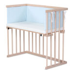 dreamgood Beistellbett Buche natur / Matratze Prime Air / Nestchen, himmelblau Punkte weiß