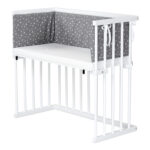 dreamgood Beistellbett Buche weiß lackiert / Matratze Prime Air / Nestchen, diamantgrau meliert Sterne weiß