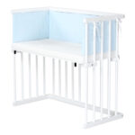 dreamgood Beistellbett Buche weiß lackiert / Matratze Prime Air / Nestchen, himmelblau Punkte weiß
