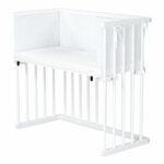 dreamgood Beistellbett Buche weiß lackiert / Matratze Prime Air / Nestchen, weiß Sternemix lichtgrau/silbergrau