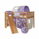 Wenn die Kinder sich auf ihr Bett freuen – früher Wunschdenken, heute Realität! DDer stabile Aufbau garantiert Sicherheit auch wenn es mal etwas wilder wird, die Leiter bietet einen einfachen Aufstieg und der frei auswählbare Vorhang ermöglicht ein bisschen Privatsphäre. Da wird nicht nur das Schlafen zum Erlebnis! Produktdetails: Podestbett Farbe: natur Material: Buche massiv, lackiert Liegefläche: Breite x Länge 90 x 200 cm Maße: Breite x Länge x Höhe 179 x 205 x 113 cm Maximale Matratzenhöhe: 15 cm Pfostenstärke: 4,5 x 4,5 cm Nischenhöhe: 76 cm Podest mit Leiter Mit Rutsche Mit Griffmulden Stoffset Farbe: lila-beige mit Motiv Design: Horse Material: 100% Baumwolle Bestehend aus Vorhang, Tunnel und Tasche Im Lieferumfang enthalten: Rutschbett Rollrost Matratze Stoffset Achtung: Einhängeregal und Dekoration sind nicht im Lieferumfang enthalten