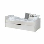 TiCAA Einzelbett Leni 90 x 200 cm Kiefer weiß mit Zusatzbett