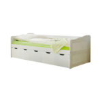 Dieses Sofabett besitzt anstelle einer zweiten Liegefläche ingesamt fünf separat ausziehbare Schubladen auf Rollen, die für extra Stauraum und Ordnung sorgen. Produktdetails: Farbe: weiß Material: Kiefer massiv, lackiert Liegefläche: Breite x Länge 90 x 200 cm Maße: Breite x Länge x Höhe 96 x 204 x 69 cm Inklusive 5 rollbarer Schubladen für extra Stauraum Zu diesem Bett werden ausschließlich die TiCAA Rollroste empfohlen. Nicht für feste Lattenrahmen geeignet Achtung: Rollrost, Matratze und Dekoration sind nicht im Lieferumfang enthalten
