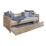 Das Sofabett Naomi eignet sich ideal für Jugend- und Gästezimmer. Nachts bietet das Bett eine gemütliche Liegefläche und genügend Platz, tagsüber eine komfortable Sitzgelegenheit. Eine zweite Liegefläche findet sich in dem Bettkasten unter der eigentlichen Liegefläche und kann leicht herausgeschoben werden. Maße: B97 x H70 x L209 cm Lieferumfang: Sofabett inkl. Ausziehbett, Montagematerial und Montageanleitung (ohne Rollrost und Matratze) Sofabett mit hohen Seiten- und Rückenteil Kann dank des Aufbaus tagsüber als gemütliches Sofa genutzt werden Aus hochwertigen und massiven Kiefernholz gefertigt Liegefläche von 90×200 cm Inkl. Ausziehbett auf Rollen
