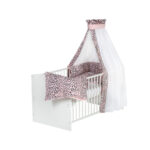 Kinderbett mit extra weichem Bett-Set für süße Babyträume. Produktdetails: Kombi-Kinderbett Farbe: weiß Material Gitterstäbe und Lattenrost: Buche massiv, lackiert Material Kopf und Fußteil: Spanplatte, melaminbeschichtet Liegefläche: Breite x Länge 70 x 140 cm Maße: Breite x Länge x Höhe 77 x 143 x 79 cm 3-fach höhenverstellbar 3 Schlupfsprossen Umbaubar zum Juniorbett mit Umbaukit Made in Germany Schardt als Testsieger „nachhaltiges Engagement“ Auszeichnung Schardt „höchste Weiterempfehlung“ von Kunden Matratze Maße: Breite x Länge 70 x 140 cm Material: Kaltschaum Bett-Set 4-teilig Farbe: pink Design: Leo Maße Bettwäsche: Breite x Länge 40 x 60 cm / 100 x 135 cm Material Bettwäsche: 100% Baumwolle Maße Nestchen: Breite x Länge 30 x 160 cm Material Nestchen: 100% Baumwolle, Füllung aus 100% Polyestervlies Maße Himmel: Länge 160 cm, Umfang 250 cm Material Himmel: 65% Baumwolle, 35% Polyester Pflegehinweise: Bettwäsche und Himmel waschbar bei 30 °C, trocknergeeignet Nestchen waschbar bei 30 °C im Schonwaschgang, nicht trocknergeeignet Im Lieferumfang enthalten: Kombi-Kinderbett Matratze Lattenrost Umbaukit zum Juniorbett Himmelstange aus Metall 4-teiliges Bett-Set: Bettwäsche, Nestchen und Himmel Achtung: Kopfkissen und Bettdecke sind nicht im Lieferumfang enthalten