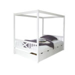 TiCAA Himmelbett Lino weiß mit 5 Schubladen