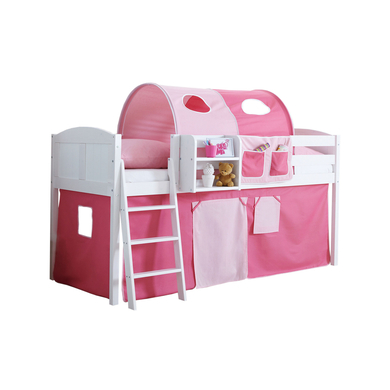TICAA Hochbett Eric Country Kiefer Weiß Classic Rosa-Pink