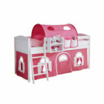 TICAA Hochbett Eric Country Kiefer Weiß Classic Rosa-Weiß