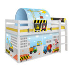 TICAA Hochbett Oskars Baustelle inkl. Zubehör Kiefer weiß Weiß