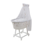 Der klassische, geflochtene Weidenkorb verleiht jedem Zimmer eine warme Atmosphäre. Dabei bietet der Korb extra viel Platz und kann so lange Zeit genutzt werden. Der Stubenwagen ist mit vier kleinen feststellbaren Rädern versehen, mithilfe derer sich das kleine Bettchen von einem Raum zum anderen schieben lässt. So kannst du dich bei Bedarf sofort um die Bedürfnisse deines Lieblings kümmern. Produktdetails: Stubenwagen Farbe: weiß Liegefläche: Länge x Breite 70 x 40 cm Maße: Länge x Breite x Höhe 94 x 77 x 60 cm Höhe Weidenkorb: 31 cm Material Untergestell: Kiefer, lackiert Material Korbgepflecht: Weide, lackiert 4 Rollen, davon 2 feststellbar Matratze Maße: Breite x Länge x Höhe 40 x 70 x 4 cm Material Bezug: 100% Baumwolle Material Füllung Schaumstoff Matratzenbezug ist abnehmbar Stubenwagenset Design: Eulenpaar Bettäwsche Maße: Breite x Länge 35 x 40 / 80 x 80 cm Material Bettwäsche: 100% Baumwolle Material Nestchen: 100% Baumwolle Mit Garnierung Material Himmel: Polyester Material Himmelstange: Metall Pflegehinweis: Bettwäsche und Nestchen waschbar bis 60°C, trocknergeeignet. Himmel waschbar bis 30°C Im Lieferumfang enthalten: Stubenwagen Himmelstange Himmel Matratze Stubenwagenset Achtung: Kissen und Bettdecke sind im Lieferumfang nicht enthalten.
