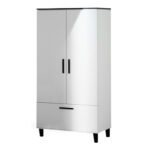 Paidi denkt an die Zukunft. Auf alle aktuellen Paidi Katalog-Programme erhalten Sie 5 Jahre Nachkauf-Garantie und Produkt-Garantie. Ausgenommen sind Textilien und Matratzen. Spiel- und Wohnwelten in den eigenen vier Räumen. Selbstverständlich passen sich die Kinderzimmer komplett an die Bedürfnisse des Bewohners an, wachsen mit und halten über Jahre höchsten Belastungen stand. Für jedes Kinderzimmer-Set erfolgt eine sorgfältige Materialauswahl und PAIDI achtet auf eine einwandfreie sowie kindgerechte Verarbeitung. Produktdetails: PVC-frei Soft-Close-System 2 Türen 1 Schublade 1 Mittelwand 4 Einlegeböden 1 Kleiderstange Technische Details: Farbe: kreideweiß / grafitgrau Material: Spanplatte, melaminbeschichtet Maße: Breite x Tiefe x Höhe 94,8 x 55,6 x 196,2 cm Achtung: Wandbefestigung unbedingt erforderlich