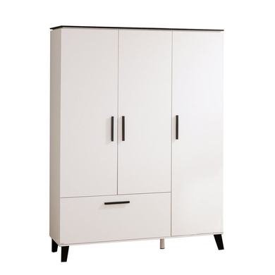 Paidi denkt an die Zukunft. Auf alle aktuellen Paidi Katalog-Programme erhalten Sie 5 Jahre Nachkauf-Garantie und Produkt-Garantie. Ausgenommen sind Textilien und Matratzen. Spiel- und Wohnwelten in den eigenen vier Räumen. Selbstverständlich passen sich die Kinderzimmer komplett an die Bedürfnisse des Bewohners an, wachsen mit und halten über Jahre höchsten Belastungen stand. Für jedes Kinderzimmer-Set erfolgt eine sorgfältige Materialauswahl und PAIDI achtet auf eine einwandfreie sowie kindgerechte Verarbeitung. Produktdetails: PVC-frei Soft-Close-System 3 Türen 1 Schubkasten 2 Mittelwände 2 Kleiderstangen 6 Einlegeböden Technische Details: Farbe: kreideweiß / grafitgrau Material: Spanplatte, melaminbeschichtet Maße: Breite x Tiefe x Höhe 141,2 x 55,6 x 196,2 cm Achtung: Wandbefestigung unbedingt erforderlich!