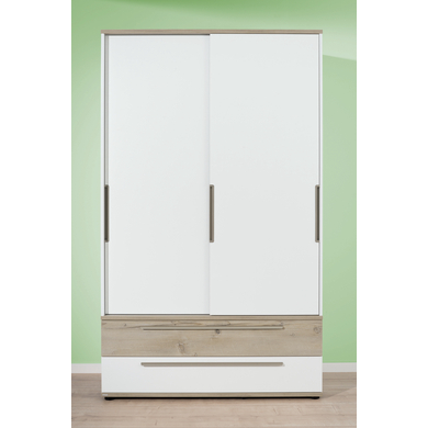 Paidi denkt an die Zukunft. Auf alle aktuellen Paidi Katalog-Programme erhalten Sie 5 Jahre Nachkauf-Garantie und Produkt-Garantie. Ausgenommen sind Textilien und Matratzen. Mit Sicherheit alles im Blick: Die beiden Schiebetüren der Kleiderschränke bremsen auf beiden Seiten für (Kinder-)Händer und schließen anschließend sanft. Sie fahren komplett hintereinander durch und können auf diese Weise auch beliebig getauscht werden. Darüber hinaus kann so alles bequem und übersichtlich verstaut und erreicht werden. Produktdetails: Farbe: kreideweiß / Fichte-Vintage-Nachbildung Material: Spanplatte mit kratzfester Melaminharzfolie Maße: Breite x Tiefe x Höhe 123,5 x 62 x 206,8 cm 2 Schiebetüren 1 Mittelwand 2 Schubladen 2 Kleiderstangen 4 Einlegeböden Schubladen: 1 kreideweiß / 1 Fichte Vintage Soft-Close-System PVC-frei Achtung: Dekoration ist nicht im Lieferumfang enthalten.