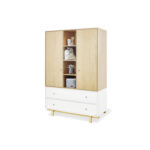 Mit viel Liebe zum Detail entwickelt, testet, produziert und vermarktet Pinolino sein hochwertiges Sortiment an Kindermöbeln, Accessoires und Spielwaren und gestaltet damit seit 1997 die Lebensräume der Kleinsten. Dabei steht Pinolino für die Werte Familie, Glück, Sicherheit und Individualität. Die Pinolino-Plus-Garantie beinhaltet die Verlängerung der gesetzlichen Gewährleistungsfrist auf 10 Jahre ab dem Kaufdatum. Sie beweist, wie überzeugt das Unternehmen von der hervorragenden Qualität seiner Produkte ist. Modernes Wohnen Der tolle Farb- und Materialmix von Boks, kombiniert mit modernem Design, machen das Kinderzimmer einzigartig. Für alle, die sich gerne modern und stilsicher einrichten. Produktdetails: Farbe: weiß / natur Material oberer Teil: Spanplatte, Dekor Material unterer Teil: MDF, lackiert Material Griffe: Gebürstetes Edelstahl Material Sockel: Buche Schichtholz, lackiert Maße: Breite x Tiefe x Höhe 126 x 57 x 190 cm 2 Türen mit Soft-Close-Funktion 2 Schubladen mit Self-Soft-Close-Funktion 2 Schubladen mit 2-facher Wäscheeinteilung 4 offene Fächer 6 höhenverstellbare Einlegeböden 1 Kleiderstange Achtung: Dekoration ist nicht im Lieferumfang enthalten