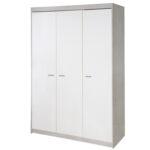 Der roba Kleiderschrank Julia bietet hinter seinen drei Türen mit hochwertigen Griffen aus Kunststoff, viel Stauraum durch eine Kleiderstange und 5 Fachböden im Kinder- oder Babyzimmer. Aufgrund seiner Höhe von fast 2 m wächst der Schrank bis zum Erwachsenwerden mit und kann auch als Jugendzimmerschrank verwendet werden. Der elegante 3-türige Kleiderschrank lässt sich mit weiteren Baby- und Kindermöbeln aus der Serie Julia perfekt zu einem komplett eingerichteten Baby- oder Kinderzimmer mit mitwachsenden Systemmöbeln erweitern. Der Babyzimmerschrank ist in Deutschland entwickelt und ist montagefreundlich. Der Korpus ist im Dekor weißgekalkte Eiche und die Fronten sind in Weiß. Produktdetails: Farbe: weiß Material: Spanplatte, melaminbeschichtet Material Griffe: Kunststoff Maße: Breite x Tiefe x Höhe 131 x 52 x 190 cm 3 Türen 1 Kleiderstange 5 Böden