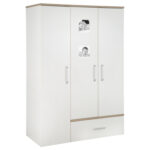 Der Kleiderschrank Maurice ist ein moderner 3-türiger Baby-& Kinderkleiderschrank mit Bilderrahmen zum Individualisieren mit deinen Babybildern oder süßen Motiven. Der Schrank hat eine praktische Einteilung ideal zum Aufbewahren von Kleidung, Büchern und Spielsachen. Der Drehtürenschrank beinhaltet drei Türen mit Soft Close Technik, eine breite Schublade mit praktischem Vollauszug, eine Kleiderstange und fünf Fachböden. Der Kinderkleiderschrank in weiß mit Oberplatte und Zierleiste in Dekor Luna Elm ist mit hochwertigen Bügelgriffen aus Metall ausgestattet. Der Kleiderschrank bietet extra viel Stauraum und besteht aus melaminbeschichteter besonders strapazierfähiger Spanplatte. Der Schrank wurde in der EU produziert und ist mit dem blauen Engel zertifiziert. Der Aufbau des Kleiderschrankes Maurice ist montagefreundlich. Mit weiteren Kindermöbeln aus der Serie Maurice lässt sich ein stilvolles Kinder- oder Babyzimmer einrichten und bestückt mit persönlichen Fotos wird er zu einem Unikat. Produktdetails: 3 Türen mit Soft-Close-Funktion 1 breite Schublade mit Vollauszug 1 Kleiderstange 5 Böden Mit integrierten Bilderrahmen Technische Details: Farbe: weiß / natur Material Korpus: Spanplatte, melaminbeschichtet Material Griffe: Metall Maße: Breite x Tiefe x Höhe 135 x 55 x 193 cm