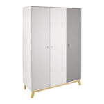 Produktdetails: 3 Türen mit Soft-Close-System 2 lange Böden 4 kurze Böden 1 Kleiderstange Made in Germany Schardt als Testsieger „nachhaltiges Engagement“ Auszeichnung Schardt „höchste Weiterempfehlung“ von Kunden Technische Details: Farbe: weiß / grau Material: Spanplatte, melaminbeschichtet Material Fußgestell: Buche massiv, geölt Maße: Breite x Tiefe x Höhe 135 x 53 x 194 cm Achtung: Dekoration ist nicht im Lieferumfang enthalten