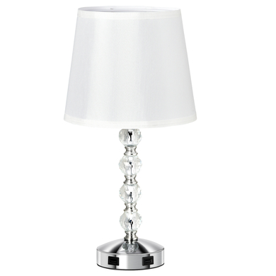 Bringen Sie Glamour in Ihr Zimmer mit dieser Nachttischlampe. Diese Tischleuchte bringt eine stimmungsvolle Atmosphäre in ihr Zuhause und sorgt für eine angenehme Beleuchtung. Der Stahlrahmen hält die Leuchte ausgewogen und stabil. Sie ist mit einer Standardfassung für E-27 Leuchtmittel ausgestattet und wird über den Schalter am Stromkabel eingeschaltet. Der schicke Stil schafft eine warme und gemütliche Atmosphäre für Wohnzimmer, Schlafzimmer, Esszimmer, Arbeitszimmer und vieles mehr. Schöner Lapmpenfuss in Kristalloptik, der das Licht einfängt und reflektiert Der Metallrahmen ist solide und zuverlässig und für den täglichen Gebrauch geeignet Der Lampenschirm aus Stoff bringt weiche Beleuchtung Ein/Aus-Schalter am Stromkabel und Touch-Schalter an Basis, für eine leichte Bedienung Geeignet für Glühbirnen: LED-Glühbirnen, Halogen-Glühbirnen?(Glühbirne nicht enthalten)