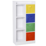 HOMCOM Bücherregal mit 4 Stoffboxen weiß, gelb, grün, blau, rot
