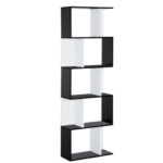 Sind Sie des gleichen alten Looks überdrüssig? Brechen Sie aus der Norm aus mit dem einzigartigen und modernen Stil dieses S-förmigen Bücherregals. Auf fünf Fächern können Sie Ihre Lieblingsbücher, Fotos, Sammlerstücke und vieles mehr ausstellen. Und das Beste ist, dass es dank der offenen Rückseite als Bücherregal und Raumteiler in einem dient. Modernes Bücherregal mit fünf Ablageflächen Verwendung als Raumteiler oder Regal Zeigen Sie Ihre Lieblingsbücher, Fotos, Sammlerstücke und mehr Leichte und dennoch stabile Konstruktion Rückseite ist mit Kippschutz ausgestattet