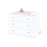Mit viel Liebe zum Detail entwickelt, testet, produziert und vermarktet Pinolino sein hochwertiges Sortiment an Kindermöbeln, Accessoires und Spielwaren und gestaltet damit seit 1997 die Lebensräume der Kleinsten. Dabei steht Pinolino für die Werte Familie, Glück, Sicherheit und Individualität. Die Pinolino-Plus-Garantie beinhaltet die Verlängerung der gesetzlichen Gewährleistungsfrist auf 10 Jahre ab dem Kaufdatum. Sie beweist, wie überzeugt das Unternehmen von der hervorragenden Qualität seiner Produkte ist. Eine schicke Wickelkommode mit 3 geräumigen Schubkästen und abnehmbarem Wickelaufsatz aus weißem Dekor. Die zeitlose, breite Wickelkommode Laura ist mit ihrem sanft abgerundeten, freundlichen Design ein wunderbarer Wickelplatz für ihr Baby: der Wickelaufsatz ist für alle gängigen Wickelauflagen perfekt geeignet, er lässt sich wahlweise links, mittig oder rechts montieren und sich einfach abnehmen, so dass sich die Kommode nach der Wickelzeit in ein lange nutzbares Sideboard verwandelt. Produktdetails: Farbe: weiß, Uni Material: MDF Maße mit Wickelaufsatz: Breite x Tiefe x Höhe 120 x 80 x 101 cm Maße ohne Wickelaufsatz: Breite x Tiefe x Höhe 120 x 55 x 89 cm Wickelhöhe: 89 cm Wickelaufsatz ist abnehmbar 3 Schubkästen, davon 1 Schubkasten mit 2-facher Wäscheeinteilung 1 Einlegeboden Im Lieferumfang enthalten: Kommode Wickelaufsatz Achtung: Dekoration ist nicht im Lieferumfang enthalten
