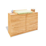 Mit viel Liebe zum Detail entwickelt, testet, produziert und vermarktet Pinolino sein hochwertiges Sortiment an Kindermöbeln, Accessoires und Spielwaren und gestaltet damit seit 1997 die Lebensräume der Kleinsten. Dabei steht Pinolino für die Werte Familie, Glück, Sicherheit und Individualität. Die Pinolino-Plus-Garantie beinhaltet die Verlängerung der gesetzlichen Gewährleistungsfrist auf 10 Jahre ab dem Kaufdatum. Sie beweist, wie überzeugt das Unternehmen von der hervorragenden Qualität seiner Produkte ist. Produktdetails: Holzstruktur sehr gut sichtbar Wickelaufsatz wahlweise links, mittig oder rechts montierbar Wickelaufsatz ist abnehmbar 3 Sicherheitsränder 6 Schubkästen Self-Soft-Close-Funktion Hochwertige Aluminium-Stangengriffe Technische Details: Farbe: Natur Material: Buche massiv, geölt Maße ohne Wickelaufsatz: Breite x Tiefe x Höhe 140 x 55 x 94 cm Maße mit Wickelaufsatz: Breite x Tiefe x Höhe 140 x 78 x 102 cm Wickelfläche: Breite x Tiefe 85 x 76 cm Wickelhöhe: 94 cm Im Lieferumfang enthalten: Wickelkommode, extrabreit Wickelaufsatz Achtung: Dekoration ist nicht im Lieferumfang enthalten