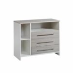 Zeitlose Eleganz mit klaren Linien! Unsere Kinderzimmer-Serie Eco gibt es in dezenter klassischer Farbgebung Holzdekor Pinie silber / Dekor weiß. Ein eleganter Blickfang sind die langen Chrom-Griffleisten, die ein leichtes Öffnen und Schließen ermöglichen. Produktdetails: Made in Germany Schardt als Testsieger „nachhaltiges Engagement“ Auszeichnung Schardt „höchste Weiterempfehlung“ von Kunden Kommode Farbe: weiß / Pinie silber Material: Spanplatte, Melamin Dekor Maße ohne Wickelaufsatz: Breite x Tiefe x Höhe 113 x 53 x 93 cm Maße mit Wickelaufsatz: Breite x Tiefe x Höhe 113 x 70 x 100 cm 3 Sicherheitsränder 3 lange Schübe mit Selbsteinzug Offenes Ablagefach Seitenregal mit Regalboden Extra starke seitliche Führungsschienen Wickelaufsatz Farbe: Pinie silber Material: Buche massiv, Melamin Dekor Wickelfläche: Tiefe x Breite 70 x 80 cm Wickelhöhe: 93 cm Wickelaufsatz abnehmbar Im Lieferumfang enthalten: Kommode Wickelaufsatz