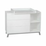 Die klaren Linien des Kinderzimmers Florence kommen durch die grifflosen Türen besonders gut zum Ausdruck und geben dem Zimmer einen hochwertigen Ausdruck. Die hellen Möbelfronten vermitteln Leichtigkeit und schaffen eine freundliche Atmosphäre. Produktdetails: Wickelaufsatz abnehmbar 3 Schubladen mit Selbsteinzug 2 offene Ablagefächer Extra starke seitliche Führungsschienen Mit Grifffräsung Made in Germany Schardt als Testsieger „nachhaltiges Engagement“ Auszeichnung Schardt „höchste Weiterempfehlung“ von Kunden Technische Details: Farbe: weiß / platingrau Material Korpus: Spanplatte, melaminbeschichtet Material Front: MDF, lackiert Material Fußgestell: Buche massiv, lackiert Maße ohne Wickelaufsatz: Breite x Tiefe x Höhe 135 x 53 x 98 cm Maße mit Wickelaufsatz: Breite x Tiefe x Höhe 135 x 72 x 106 cm Wickelhöhe: 98 cm Im Lieferumfang enthalten: Kommode Wickelaufsatz