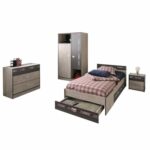 Dieses moderne Jugendzimmer, bestehend aus einem 2-türigen Kleiderschrank, Einzelbett mit drei Schubkästen, Nachtkommode und einer großen Kommode kommt in einer tollen Optik. Zusätzlich zu der schönen Lackierung ist es ausserdem mit Dekoprint versehen, das dem Zimmer das gewisse Extra gibt. Maße: Schrank (B101 x H182 x T51), Bett (B99 x H66 x T207), Bettschubkasten (B149 x H19 x T43), Nako (B40 x H46 x T28), Kommode (B87 x H77 x T40 cm) Lieferumfang: Kleiderschrank, Bett inkl. 3 Schubkästen, Nachtkommode, Kommode, Montagematerial und Montageanleitung (ohne Matratze, Lattenrost und Dekoration) Bestehend aus Kleiderschrank, Bett, SK-Kommode und Nachtkommode Bett mit 3x Schubkästen für extra viel Stauraum inkl. passender Nachtkommode hochwertige Verarbeitung