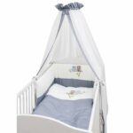 Ein wunderschönes Bettset, bestehend aus Bettwäsche, Nestchen und Himmel. Das Nestchen schützt mit seiner weichen und dicken wattierung deinen Liebling vor harten Gitterstäben. Das Nestchen und die Bettwäsche verzieren zwei süße Eulen. Die Stickerei ist samtweich und sehr hochwertig und liebevoll verarbeitet. Produktdetails: Bettbezuggröße: 100 x 135 cm Kissenbezuggröße: 40 x 60 cm Nestchengröße: 35 x 190 cm Schadstoffgeprüfte Textilien nach Öko-Tex Standard 100 Material: Kissen: 100% Baumwolle Bettdecke: 100% Baumwolle Himmel: 100% Polyester Nestchen: 100% Baumwolle Füllung Nestchen: 100% Polyester Pflegehinweise: Bettwäsche waschbar bis 60°C Trocknergeeignet Nestchen und Himmel waschbar bis 30°C Lieferumfang: 1x Bettwäsche 1x Nestchen 1x Himmel Das Bett ist nicht im Lieferumfang enthalten.