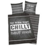 HERDING Bettwäsche Sprüche “Der frühe Vogel…” 135 x 200 cm