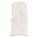 Produktdetails: Kuschelweiche Bettwäsche aus Baumwoll-Satin im verspielten Dino-Design Verpackt im praktischen & wiederverwendbaren Turnbeutel Zweiteiliges Set Sanft und weich auf Babys Haut Deckenbezug mit Reißverschluss am Fußende Kissenbezug mit Hotelverschluss zum einfachen Auf- und Abziehen Größe: 135 x 200 / 80 x 80 cm cm Material & Pflege: Material: 100 % Baumwolle Waschbar bei 60° C Für den Trockner geeignet