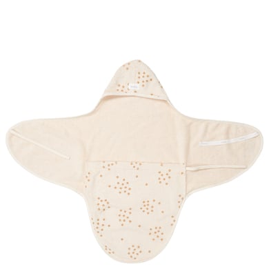 Das Baderitual mit deinem Kleinen ist ein schöner und intimer Moment. Um dieses entspannte und angenehme Gefühl für dich und dein Baby auch nach dem Baden noch zu erleben, sollte ein Umschlagtuch in deinem Baderitual nicht fehlen. Nach dem Baden kannst du dein Baby bequem in das weiche Tuch wickeln, wobei der Kopf bequem von der Kapuze umschlossen ist. Du kannst das Einwickeltuch leicht mit den entsprechenden Schnüren verschließen, um dein Baby warm zu halten. Es ist auch schön, das Kind in diesem Wickeltuch zu stillen oder mit der Flasche zu füttern, während die Füße im Beutel schön warm bleiben. Der süße Blumenprint und die Details machen den Badecape besonders süß. Dieses Umschlagtuch ist für Neugeborene bis etwa 6 Monate geeignet. Flower Crown bietet eine umfangreiche Produktpalette an. Die Produkte sind weich, saugfähig und aus schlaufenfestem Bio-Frottee hergestellt. Der dezente Blumenprint wirbelt fröhlich über die neutrale Basisfarbe. Pflücke ein paar Blumen und bastle eine kreative Girlande; Spread some love mit Flower Crown! Wickeltuch für Neugeborene mit Fußsack Fröhliche Blumen wirbeln über das sommerliche Sunnyside-Frottier aus 100 % Bio-Baumwolle. Maschinenwäsche bei 30 °C, nicht im Trockner trocknen und lauwarm bügeln Dieses Wickeltuch ist für Neugeborene bis zu einem Alter von ca. 4 Monaten geeignet Hergestellt in Portugal unter fairen Arbeitsbedingungen und mit Öko-Tex-Zertifizierung. Materialanteil: 90% Bio-Baumwolle, 10% Polyester Trocknergeeignet: Nein Waschhinweis: Waschbar bei 30°C