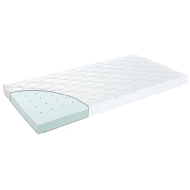 Babys verbringen die meiste Zeit liegend auf der Matratze. Deshalb legen immer mehr Eltern großen Wert auf die richtige Auswahl der Produkte. Alle Träumeland Baby- und Kindermatratzen werden mit großer Sorgfalt im Werk in Österreich hergestellt. Dazu werden nur ausgewählte Materialien verwendet, welche fast ausschließlich aus Deutschland, Österreich und der Schweiz kommen. Produktdetails: Maße: Breite x Länge x Höhe 60 x 120 x 10 cm Hochwertiger Matratzenkern Punktelastischer Kaltschaum mit vertikalen Luftkanälen Einfache Belüftung Der Bezug ist durch einen umlaufenden Reißverschluss abnehmbar Bezug: 100% Baumwolle versteppt mit Wash-Vlies Pflegehinweis: Matratzenbezug waschbar bei 60°C, trocknergeeignet bei Schongang Geeignet für Allergieker Materialerläuterung: Wash-Vlies Das Wash-Vlies ist eine waschbare Hohlfaser und somit für Babys mit Allergien bestens geeignet. Das Wash-Vlies hat ein hohes Rückformvermögen und polstert die Träumeland Matratzenbezüge.(100% Polyester) Kaltschaum Im Vergleich zu Softschaum werden bei Kaltschäumen hochwertigere Rohstoffe eingesetzt. Kaltschaum zeigt ein verbessertes punktelastisches Verhalten, ist atumgsaktiver und hat dadurch eine längere Lebensdauer. Durch das Einarbeiten von Luftkanälen und Konturschnitten werden die wichtigen Faktoren wie Belüftung und Elastizität entscheidend verbessert. Belüftung: Eine belüftete Matratze ist besonders wichtig für dein Baby. Durch die Luftkanäle wird ungesunder Wärmestau vermieden, ausgeatmetes CO² wird abtransportiert und das Kind kann frei atmen. Matratzenbezug: Alle Träumeland-Bezüge sind abnehmbar, bei 60 °C waschbar (Ausnahme: Natur) und luftdurchlässig. Matratzenkern: Je nach Qualität passt sich ein punktelastischer Kern perfekt an den Körper an. Er gibt nur dort nach, wo vom Körper Druck ausgeübt wird, um die Wirbelsäule zu schützen. Zu harte Matratzen eignen sich nicht für den weichen Knochenbau des Babys. Fragen und Antworten Bei der Auswahl aus so unterschiedlichen Modellen fällt die Entscheidung nicht leicht. Wir bieten deshalb ein Punktesystem, welches einer schnellen und sicheren Orientierung durch unser Babymatratzenprogramm dient: Je höher die Qualitätspunkte eine Matratze sind, desto hochwertiger ist diese. Grundsätzlich gilt es ein paar Faktoren zu berücksichtigen und auf die eigene Wichtigkeit zu prüfen: Eine gute Belüftung, das Material sowie Zusatzfunktionen. Welchen Bezug soll ich für meine Matratzen wählen? Mehr Infos unter: www.traeumeland.com/DE/matratzenbezug Welchen Kern soll ich für meine Matratze wählen? Mehr Infos unter: www.traeumeland.com/DE/matratzenkern Materialgegebenheiten Meine gekaufte Babymatratze riecht… Neue Matratzenkerne können manchmal einen Neugeruch aufweisen, der aufgrund der Verpackung nicht ganz entweichen kann. Der Geruch ist unbedenklich für das Baby und nach spätestens zwei bis vier Wochen wieder verschwunden. Idealerweise lüften Sie die Babymatratze vor der ersten Benutzung im Freien aus. Achten Sie aber darauf, dass die Babymatratze nicht feucht wird oder direkt in der Sonne steht. All Träumeland Matratzen werden von unabhängigen Prüfinstituten mehrfach auf Schadstoffe geprüft und sind für den Einsatz im Babybett hervorragend geeignet Der Kern der Babymatratze ist plötzlich gelb – was soll ich machen? Keine Sorge – ein gelber Matratzenkern ist komplett unbedenklich. Jeder Schaum verfärbt sich durch Sonneneinstrahlung bzw. durch künstliches Licht ins gelbliche. Das ist völlig unbedenklich und keinesfalls gefährlich oder schädlich für dein Baby. Meine Babymatratze hat plötzlich eine Mulde Die Bezüge der Babymatratze sind auf der Innenseite mit einem Vlies versteppt. Dieses Vlies verliert mit der ersten Nutzung etwas an Bauschigkeit. Wenn dein Kind immer auf derselben Stelle der Matratze schläft, kann es passieren, dass es den Anschein einer Mulde erweckt, da das Köpfchen punktuell auf der Matratze aufliegt. Wenn du dein Kind auf verschiedene Stellen der Matratze legst, bzw. sich das Kind später mehr auf der Babymatratze bewegt, drückt sich das Vlies auf dem gesamten Bezug zusammen und die „Mulde“ verschwindet wieder. Dieses Zusammendrücken des Bezuges stellt keinen Nachteil für dein Kind dar. Ist der Matratzenkern auch waschbar? Nein. Träumeland verwendet zur Produktion einen auf Wasserbasis basierenden Kleber, die einzelnen Teile würden sich dadurch lösen. Nässeschutzauflagen Benötige ich eine zusätzliche Auflage zum integrierten Nässeschutz im Bezug? Für Babymatratze mit Träumeland sleep…