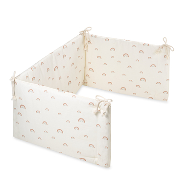 Produktdetails: Mit Bindebändern Schützt vor Zugluft Geeignet für Gitterbetten in 60 x 120 cm und 70 x 140 cm Hergestellt in Deutschland Maße & Gewicht: Maße: 180 x 35 cm Material & Pflege: Material: 100% Bio-Baumwolle Füllung 100% Polyestervlies Waschbar bis 30 °C Trocknergeeignet Schadstoffgeprüft nach STANDARD 100 by OEKO-TEX® (Prüf.Nr. S07-0691 HOHENSTEIN HTTI)