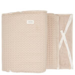 Der Laufstall steht normalerweise in deinem Wohnzimmer, und deshalb ist es schön, wenn du das Zubehör in Farbe und Stoff auf deine Einrichtung abstimmen kannst. Das Wichtigste an diesem Bettchen für den Laufstall ist natürlich der Schutz vor Zugluft und dem Stoßen an den Gitterstäben des Laufstalls. Gleiches gilt für das Bett Ihres Kindes, in dem es als Bettstoßstange fungieren kann und Ihr Kind nicht verletzt werden kann. Du kannst das Nestchen mit den entsprechenden Schnüren einfach an den Gitterstäben des Laufstalls oder Bettchens befestigen. Über die gesamte Breite des Kissens sind mehrere Befestigungsschnüre angebracht, so dass das Kissen gut verteilt und festgeschnürt werden kann. Waffelstoff von Koeka; wer kennt ihn nicht? Der waffelgeprägte Baumwollstoff ist eine coole Version der old school Retro-Waffeldecken aus den Siebzigern. Waffelprodukte sind unsere absoluten Bestseller und in einer so großen Farbauswahl erhältlich, dass es sicher eine Farbe gibt, die auch zu dir passt. Außerdem bringen wir regelmäßig eine neue Trendfarbe auf den Markt, also behaltet unsere Waffelartikel im Auge! Wusstest du, dass sich die Namen von Waffelprodukten auf das verwendete Futter beziehen? Amsterdam ist Waffel mit Frottee, Antwerpen ist Waffel mit Flanell oder Stretch Frottee und Oslo ist Waffel mit Teddy. Die Gröβe dieses Produkts ist 32x185cm. Weicher Rand gegen die Stangen des Laufstalls oder des Bettes Der robuste Baumwollstoff mit Waffel-Relief ist eine moderne Version der Retro-Waffel aus den Siebzigern. Maschinenwäsche bei 30 °C, nicht im Trockner trocknen und nicht bügeln Die Stoßstange ist 180 cm lang und 30 cm hoch. An 4 Punkten sind oben und unten Seile angebracht, um den Stoßfänger an den Stangen zu befestigen. In der Türkei unter fairen Arbeitsbedingungen produziert und mit Öko-Tex-Zertifizierung versehen. Materialanteil: 100% Baumwolle Trocknergeeignet: Nein Waschhinweis: Waschbar bei 30°C
