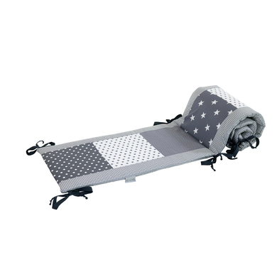 Ullenboom Patchwork-Nestchen für Babybett 140×70 cm Graue Sterne (420 cm Rundum)