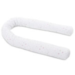 Viele Kinder können am besten auf der Seite schlafen. Da kommt die Nestchenschlange zum Einsatz – als Stützkissen. Sie ist großzügig mit antiallergischer Silikonwolle gefüllt, sodass sie nicht zu weich aber auch nicht zu hart ist und somit als optimale Stützung dienen kann. Mit ihrer angenehm weichen, aus 100 % Baumwolle bestehenden, Oberfläche schützt sie deinen Liebling vor dem Holzrahmen des Kinderbetts. Die hochwertige Füllung sowie die Oberfläche entsprechen höchster Qualität und sorgen sowohl für die Sicherheit als auch für den Komfort deines Kindes. Darüber hinaus ist die Nestchenschlange vielseitig verwendbar – ob im Kinderbett, im Laufstall oder als Spielgefährte, durch ihre Flexibilität passt sich die Nestchenschlange allen Gegebenheiten an. Des Weiteren kann sie als Rundumschutz auf der Wickelkommode genutzt werden. Wenn sie im Bett nicht mehr gebraucht wird, dient sie als Spielgefährte oder als Zugluftstopper. Produktdetails: Antiallergische, formstabile und weiche Silikonwolle Schafft ruhige Schlafatmosphäre Schützt vor Zugluft Schadstoffgeprüft und ausgezeichnet mit dem Zertifikat „Textiles Vertrauen“ nach Ökotex-Standard 100 Klasse 1 für Babys (12.0.03346). Technische Details: Material Oberstoff: 100% Baumwolle Material Unterstoff: 100% Polyester Maße: Lange x Breite x Höhe 200 x 13 x 13 cm Waschbar bis 40°C