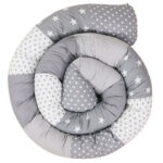 Die modische Bettschlange ist der ideale Schutz für dein Kind. Sie verhindert, dass sich dein Baby an den Gitterstäben verletzt oder im Schlaf daran stößt. So sorgt die Baby Bettrolle für einen erholsamen und entspannten Schlaf. Allerdings bietet die Nestchenschlange noch zusätzliche Vorteile. Denn die gut gepolsterte und weiche Baby Bettrolle vermittelt dem Baby ein Nestgefühl. Dies wiederum sorgt für Sicherheit und Geborgenheit. Eine Bettschlange, auch als Babybett Kantenschutz bekannt, ist für Babys in jedem Alter eine sichere Lösung. Ist das Kind größer, eignet sich die Bettschlange hervorragend zum Kuscheln. Die hübsche Nestchenschlange mit unterschiedlichen Motiven ist 300 Zentimeter lang und 13 Zentimeter dick. Der weiche Außenstoff aus 100 % ÖkoTex zertifizierter Baumwolle ist mit einer geräuschlosen Füllung aus ÖkoTex Polyester versehen. Die Baby Bettrolle ist bei 30°C maschinenwaschbar. Produktdetails: Babybett Kantenschutz 300 cm lang Durchmesser 13 cm 15 Motiv-Patches Materialien: Außenmaterial: 100 % Baumwolle Füllung: 100 % Polyester Zertifiziert nach STANDARD 100 by OEKO-TEX®: 19.0.71418 HOHENSTEIN HTTI Alle Materialien sind schadstoffgeprüft und antiallergisch Maschinenwaschbar bei 30°C Allgemeine Vorteile: Passt sich jeder Form an Babybett-Kantenschutz ist ideal als Lückenfüller zwischen Eltern- und Beistellbettchen Baby-Bettrolle bei Bewegung absolut geräuschlos (kein Knistern) Zuverlässiger Schutz für das Baby Hergestellt in einem kleinen EU-Familienunternehmen Passt zu anderen Produkten dieser ULLENBOOM-Produktserie