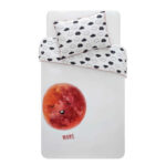 Entdecke das Universum mit der „COSMIC Collection“. Lassen Sie die kleinen Entdecker eine spannende Reise zu Sonne, Mond, Mars und Uranus erleben. Die Bettwäsche-Sets können mit passenden Musselin-Decken und Baby-Ponchos ergänzt werden.Die ultimative Weltraumreise beginnt! Bei der Gestaltung der Cosmic-Kollektion haben wir uns von der Faszination der Weltraumforschung inspirieren lassen. Mit dem fröhlichen Blick von Cosmic auf die Welt der Planeten und Sterne laden wir Kinder ein, Sonne, Mond, Mars und Uranus im Schlaf zu entdecken. Die Cosmic-Kollektion schmückt die Schlafzimmer Ihrer Babys und Kinder mit ihren einzigartig gestalteten Kissen- und Bettbezügen. 100 % Baumwollgewebe und eine besondere Weichheit sind einen Versuch wert! Mit dem besonders weichen Satin-Gewebe aus 100 % Baumwolle bietet die Cosmic-Kollektion einen besonders hohen Komfort. Die luxuriöse Optik und die bügelleichte Gewebe-Struktur sind weitere Vorteile dieses Stoffes. Liebe Eltern, es tut uns leid, aber diese traumhafte Bettwäsche bieten wir in Baby- und Kindergrössen an. Wenn Sie sich heimlich in diese Bettwäsche einkuscheln, haben wir vollstes Verständnis dafür! Vertrauenssiegel für Textilien: «OEKO-TEX®» OEKO-TEX® ist das wichtigste und international anerkannte Qualitätssiegel für Textilien. OEKO-TEX® bescheinigt, dass ein Stoff keine schädlichen Chemikalien enthält und den weltweiten Umweltstandards entspricht. Waschmaschinenfest 30-Tage-Test mit kostenlosem Rückversand OEKO-TEX zertifiziert 100 cm x 135 cm+40 cm x 60cm Materialanteil: 100% Baumwolle Trocknergeeignet: Nein Waschhinweis: Waschbar bei 30°C