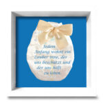 Tanjo Bestickte Windel mit Spruch im Rahmen blau 3 – Zauber des Anfangs blau